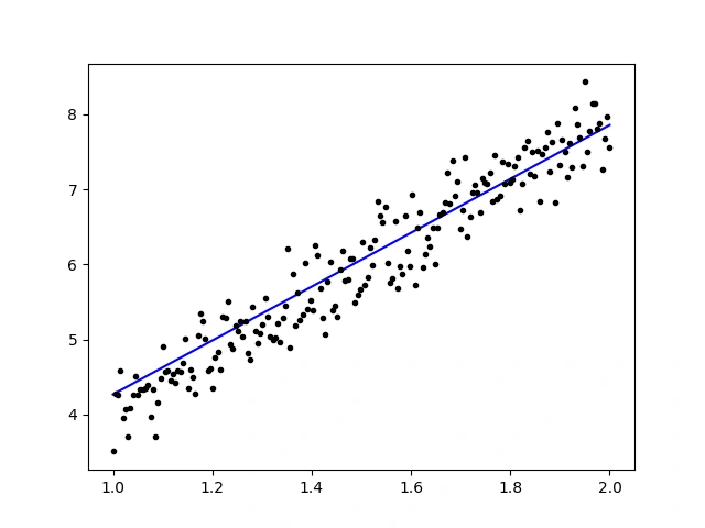 When apply a classic ordinary least squares algorithm to the data used in figure 1, the new regression line (shown in red) appears to fit the data well, but is it really better? We can get a definitive answer by comparing the squared errors. The mean least-squares error for the regression calculated using a machine-learning gradient-descent algorithm was 0.0953. The mean least-squares error for the classic OLS algorithm was 0.0773, a superior result.